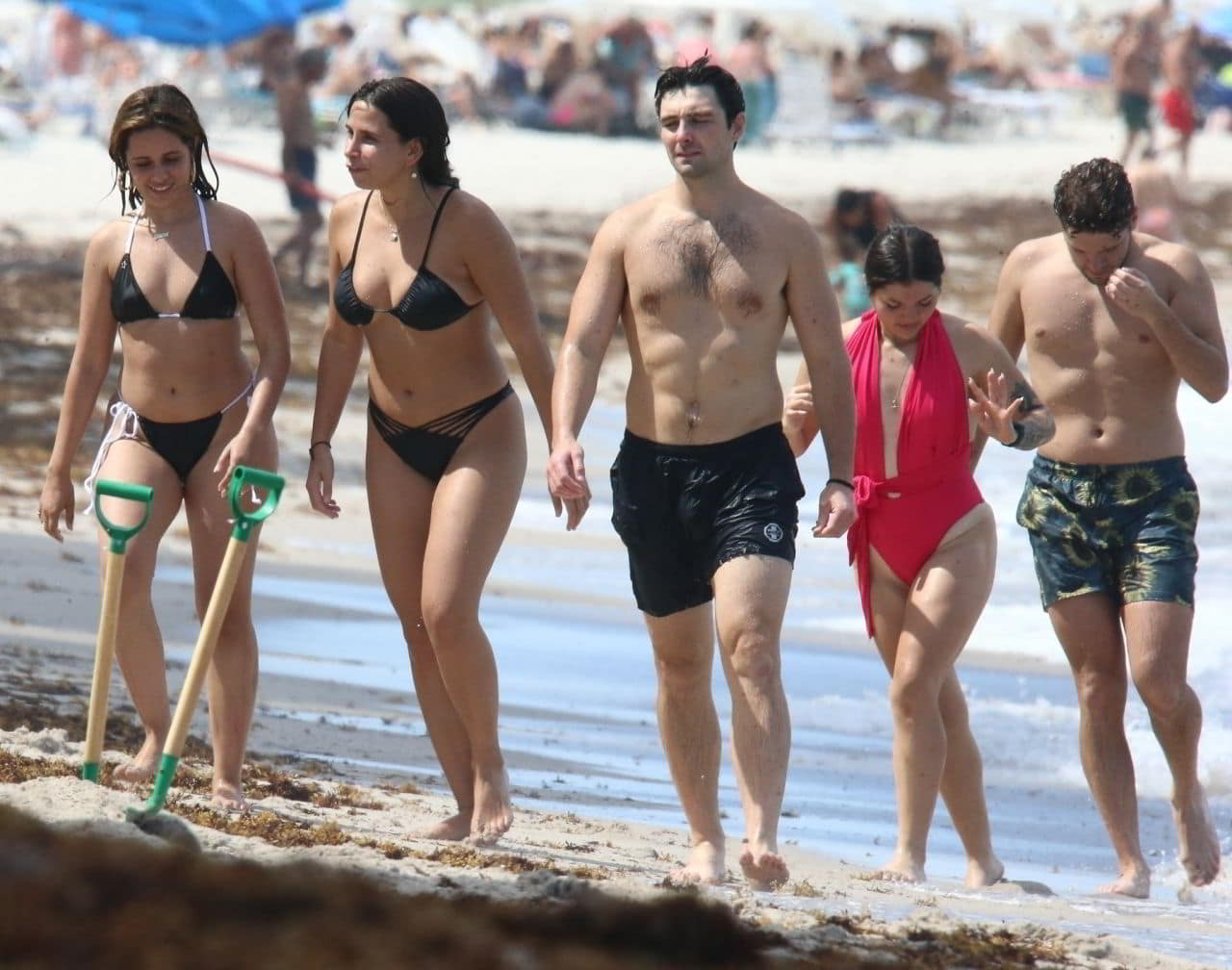 Camila Cabello enjoys a playful day in the water in Coral Gables, Florida, confidently showing off her sexy curves in a small black bikini. Soaked from the waves, her wet bikini clings to her skin as she reveals plenty of her stunning beach body, looking seductive, carefree, and every bit like a true beach temptress.