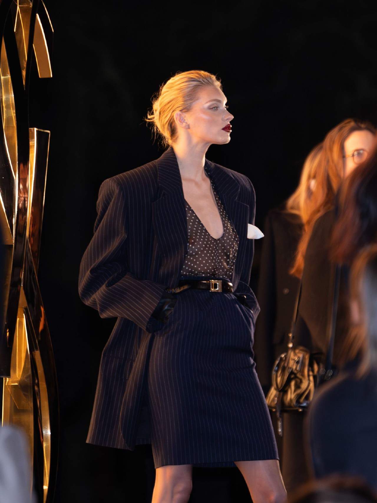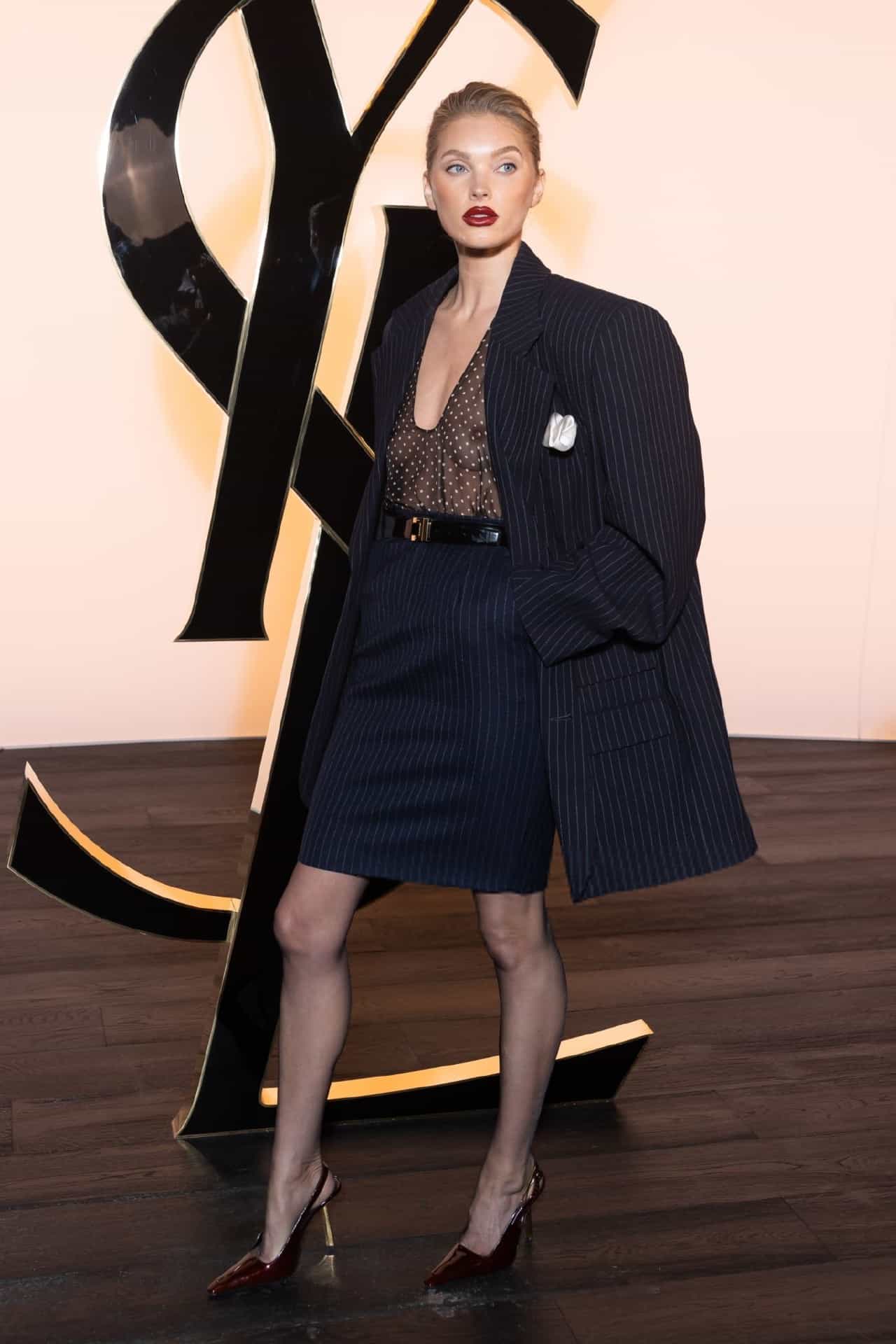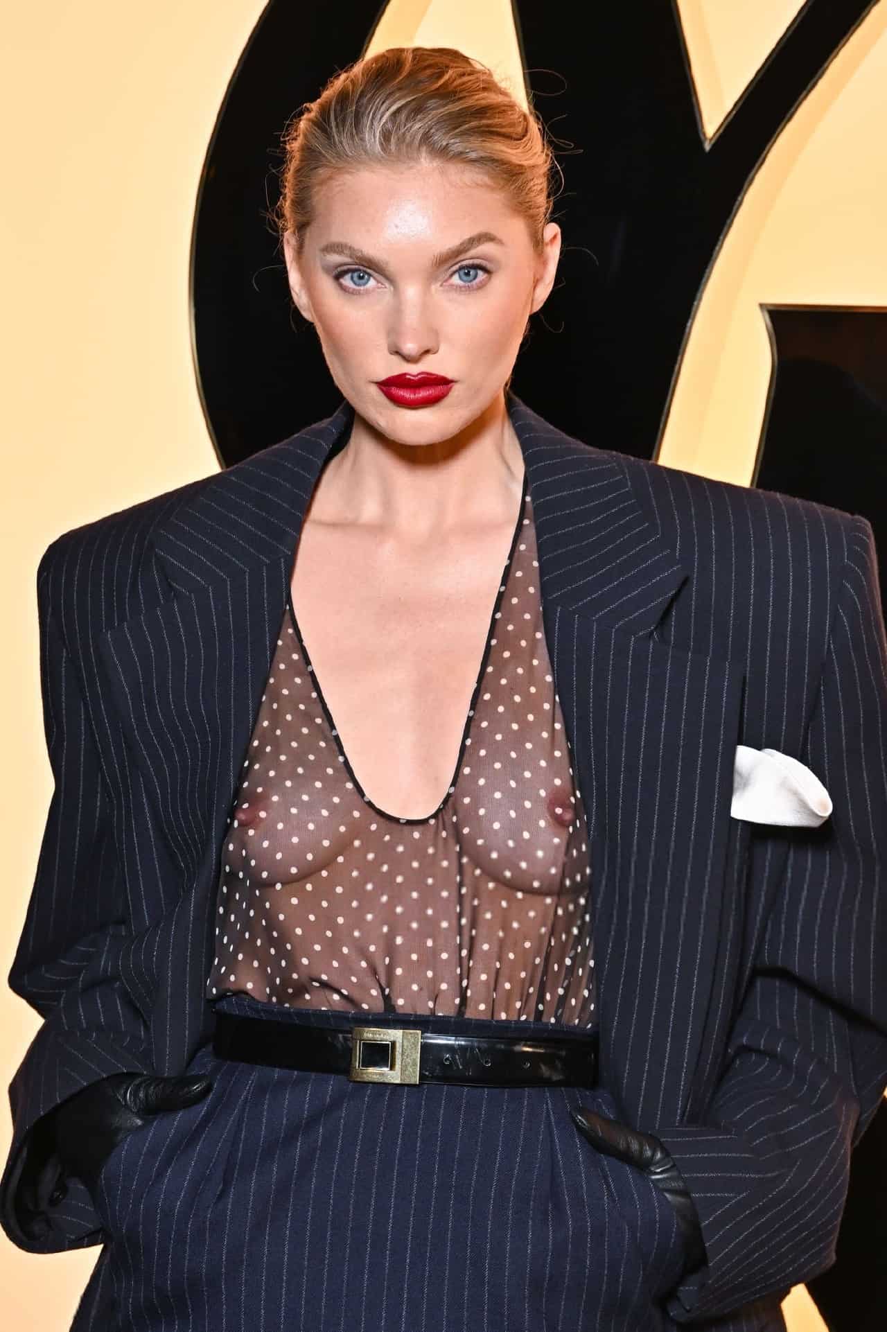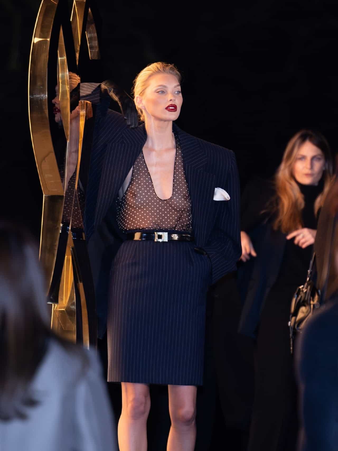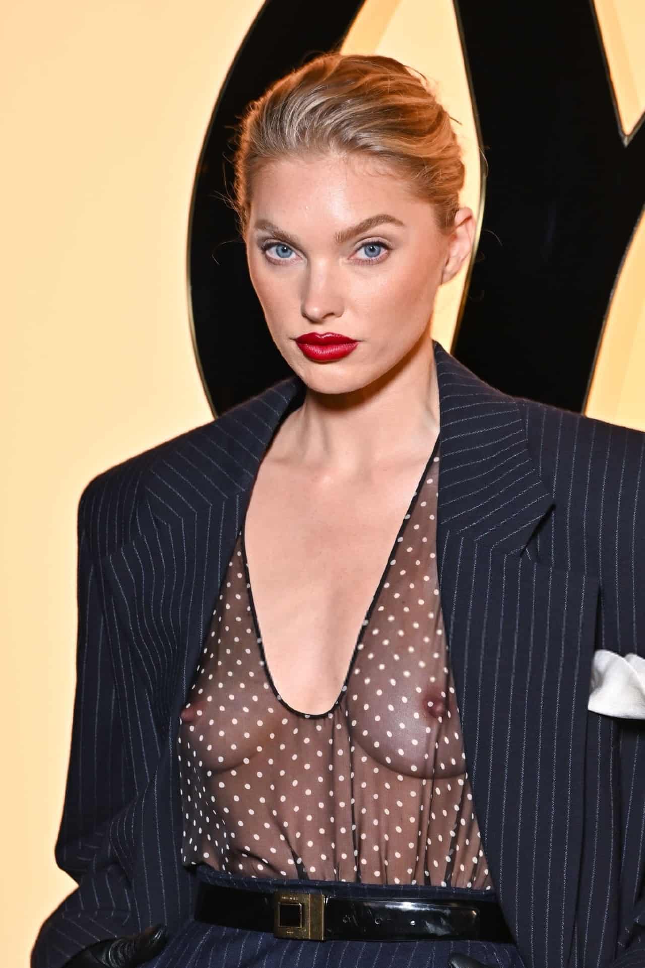 Elsa Hosk Showing Boobs in a See Through Top at Paris Fashion Week