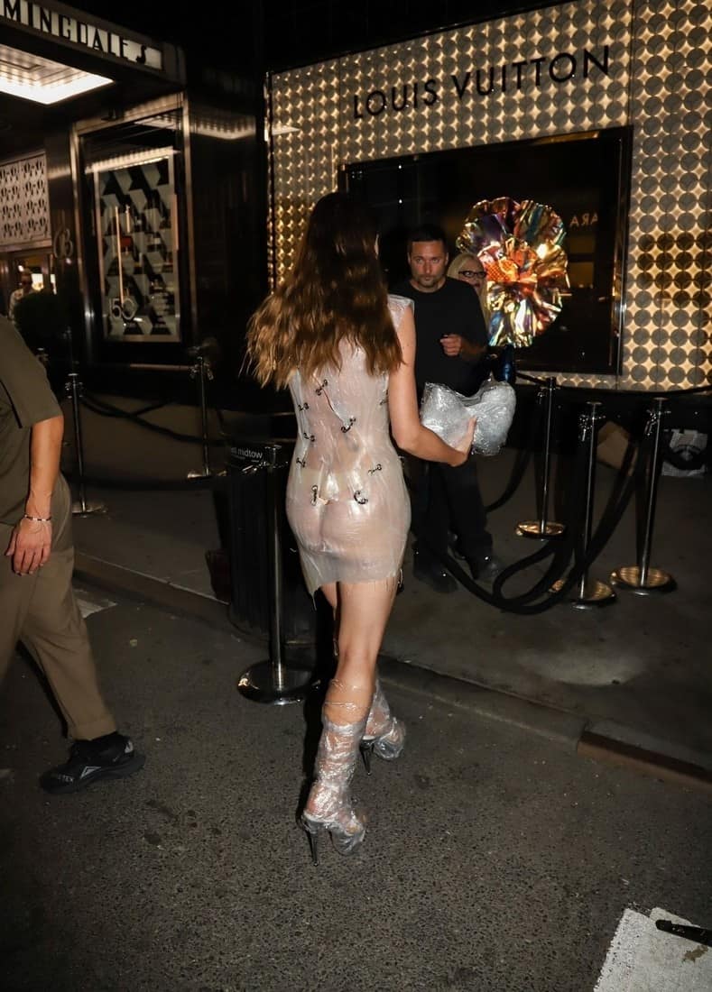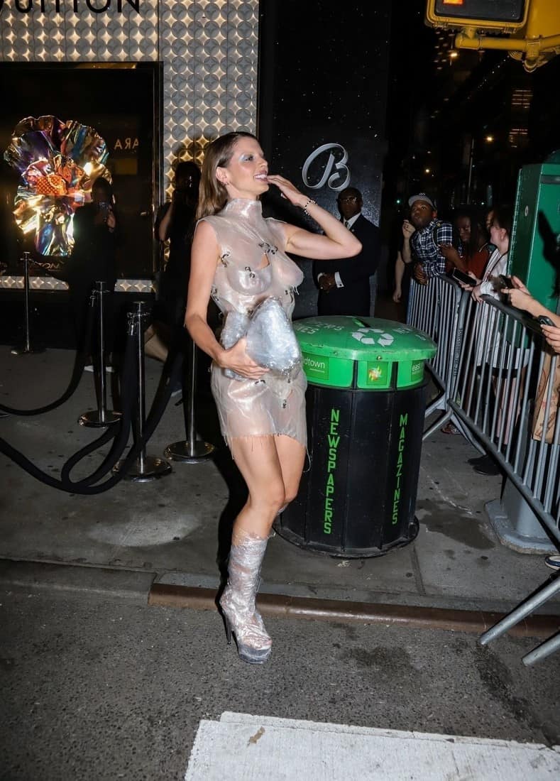 Julia Fox at Harper’s Bazaar Party in Plastic See-through Dress