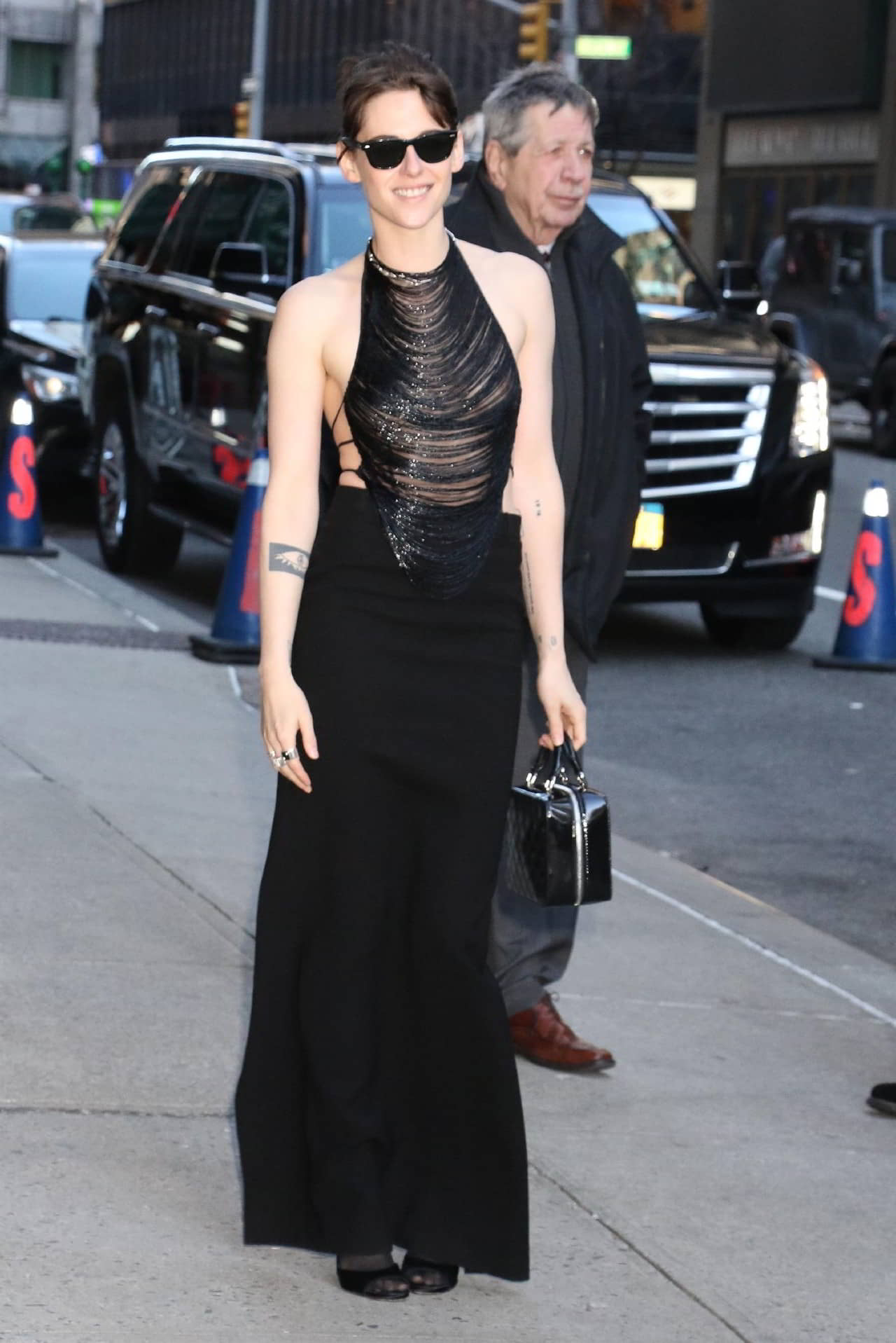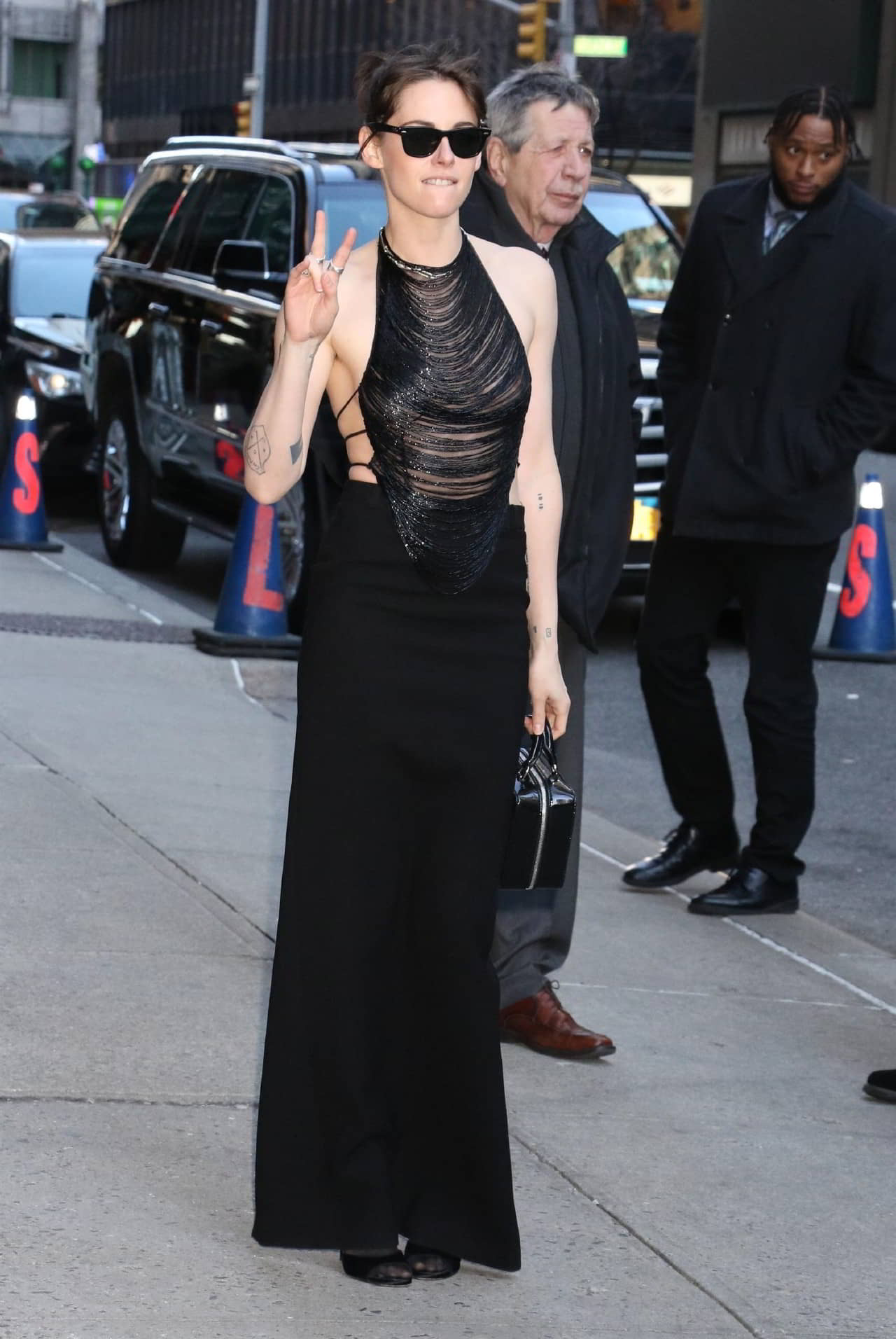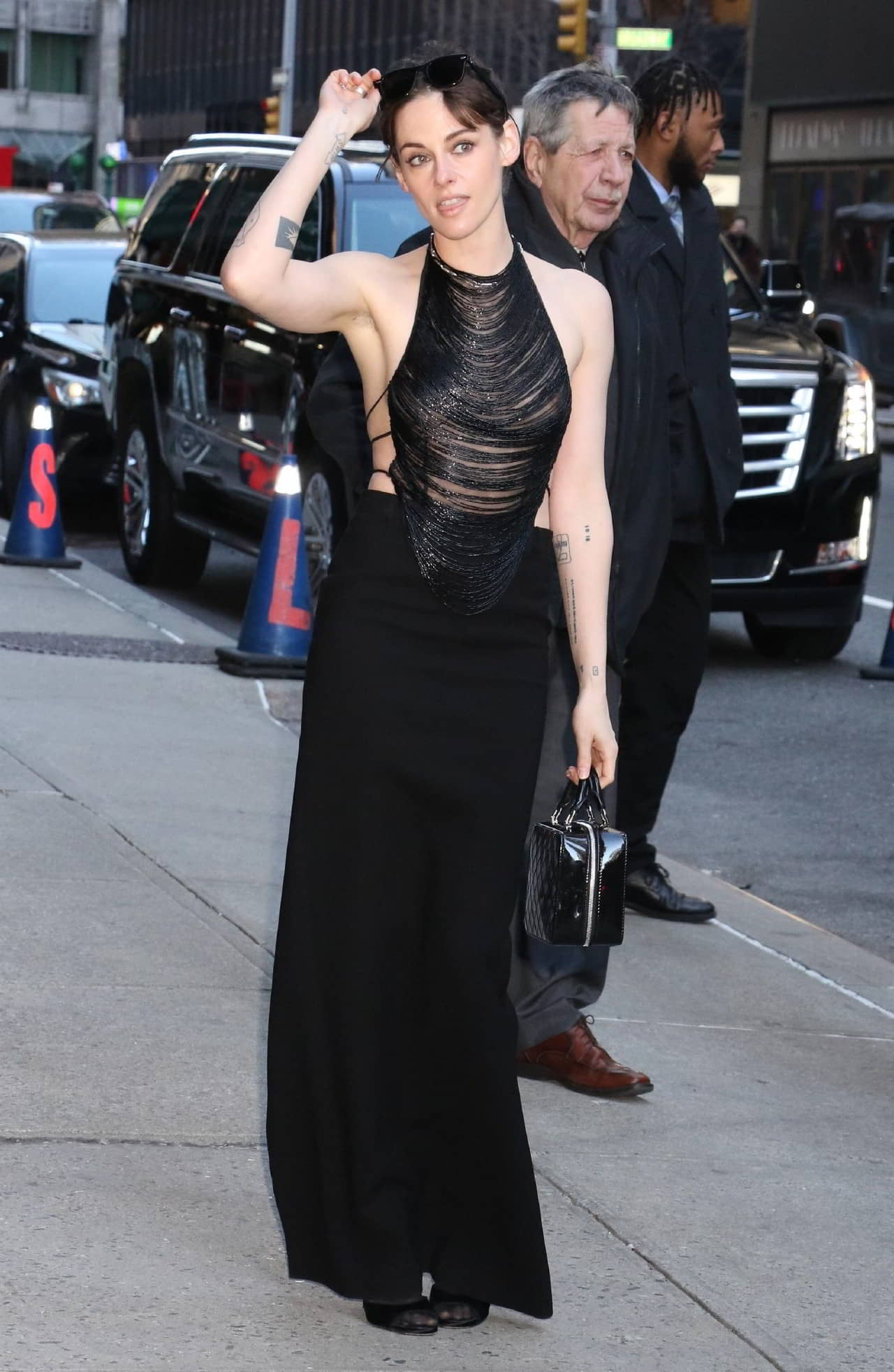 Kristen Stewart Exposing Her Nipples Outside the Stephen Colbert Studio