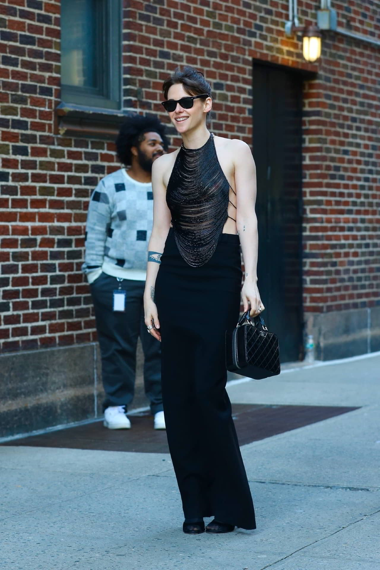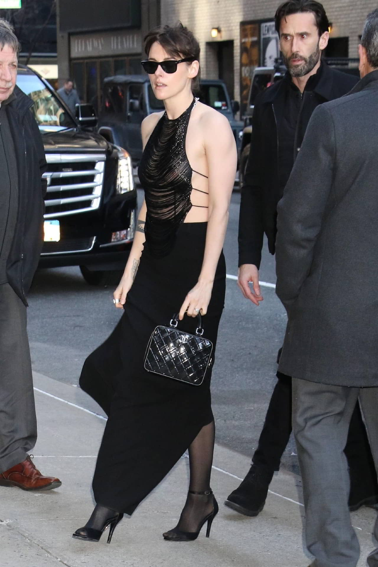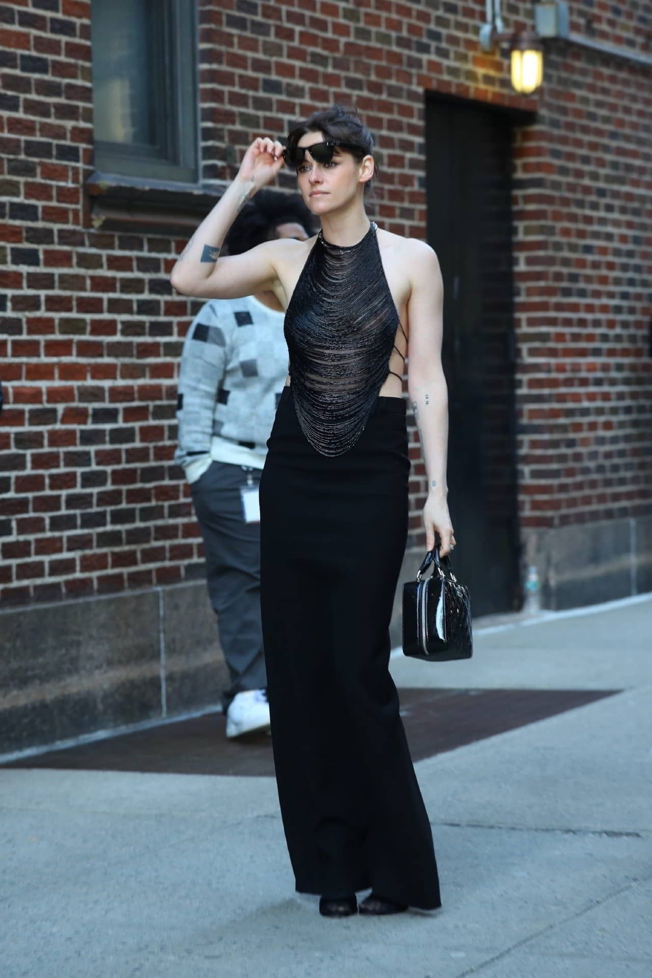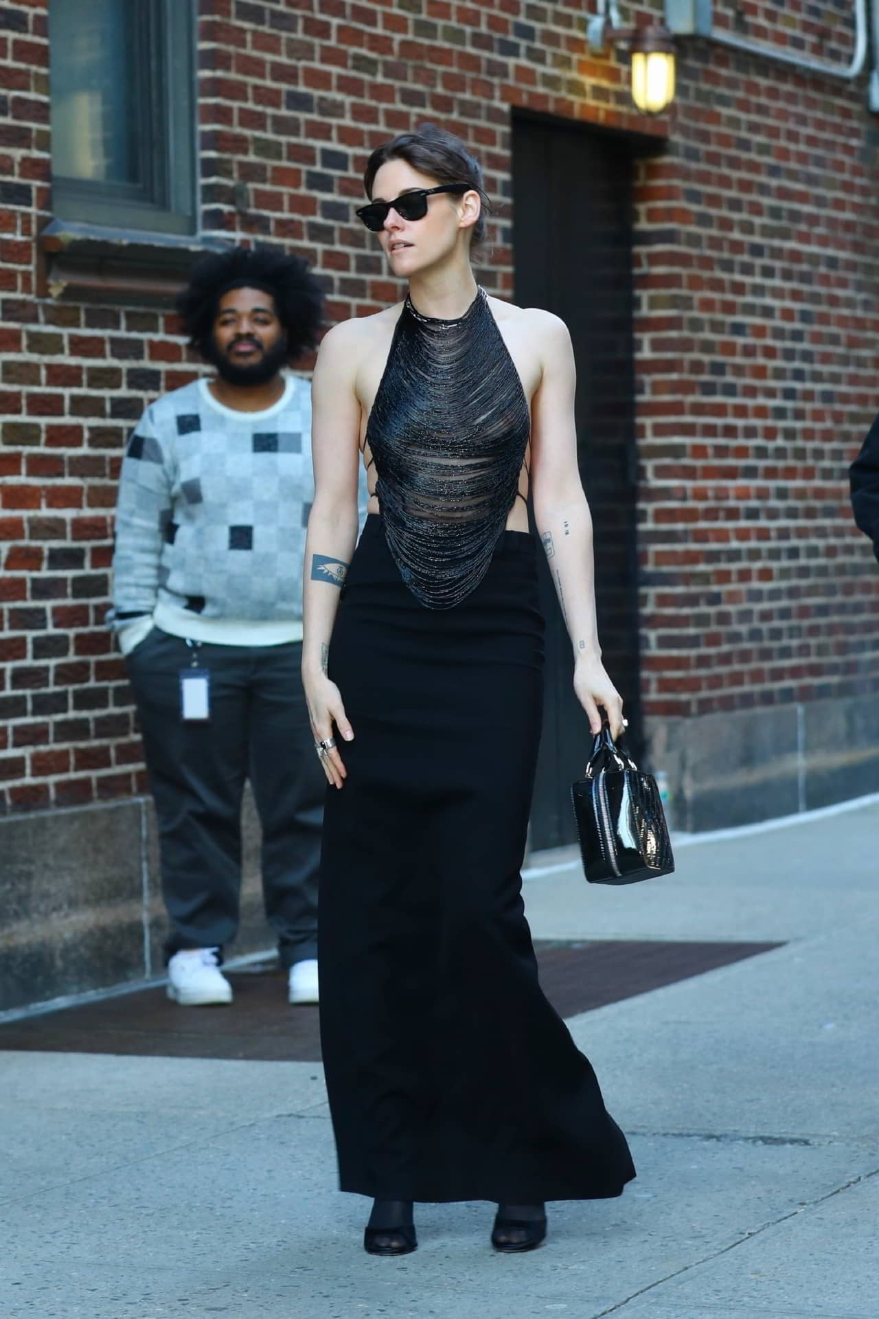 Kristen Stewart Exposing Her Nipples Outside the Stephen Colbert Studio