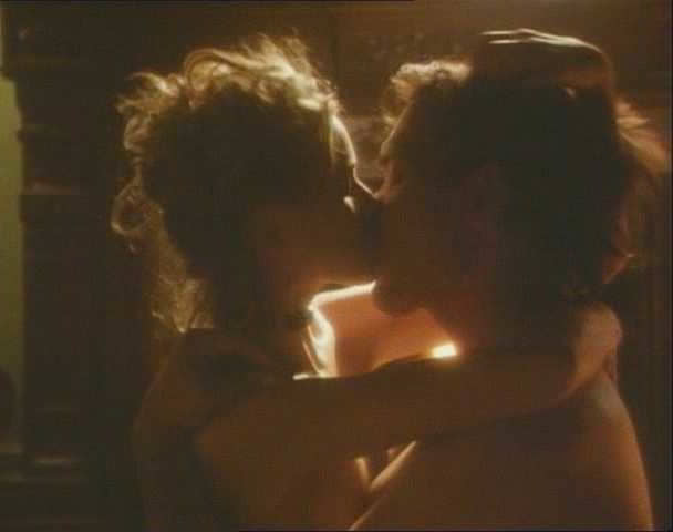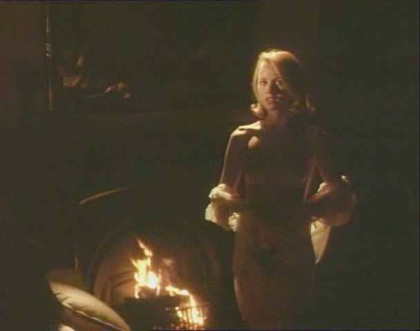 In a different moment, Naomi Watts is near a fireplace, wearing a loose, open shirt. She shrugs it off her shoulders, letting it drop to expose both breasts fully. She turns to face a guy standing nearby, her nipples catching the warm glow of the fire, then walks toward him with slow, confident steps.
